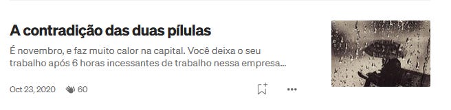 Se eu pudesse falar algo sobre o Substack eu diria isso: ele mudou meu trabalho para sempre. Não só porque a partir de agora eu posso monetizar isso aqui. Mas porque meu comportamento mudou. As possibilidades aumentaram e ficaram mais críveis. O que eu achei que era só uma vontade na verdade é um propósito — e tudo o que eu falo sobre YouTube vale perfeitamente para o Substack.